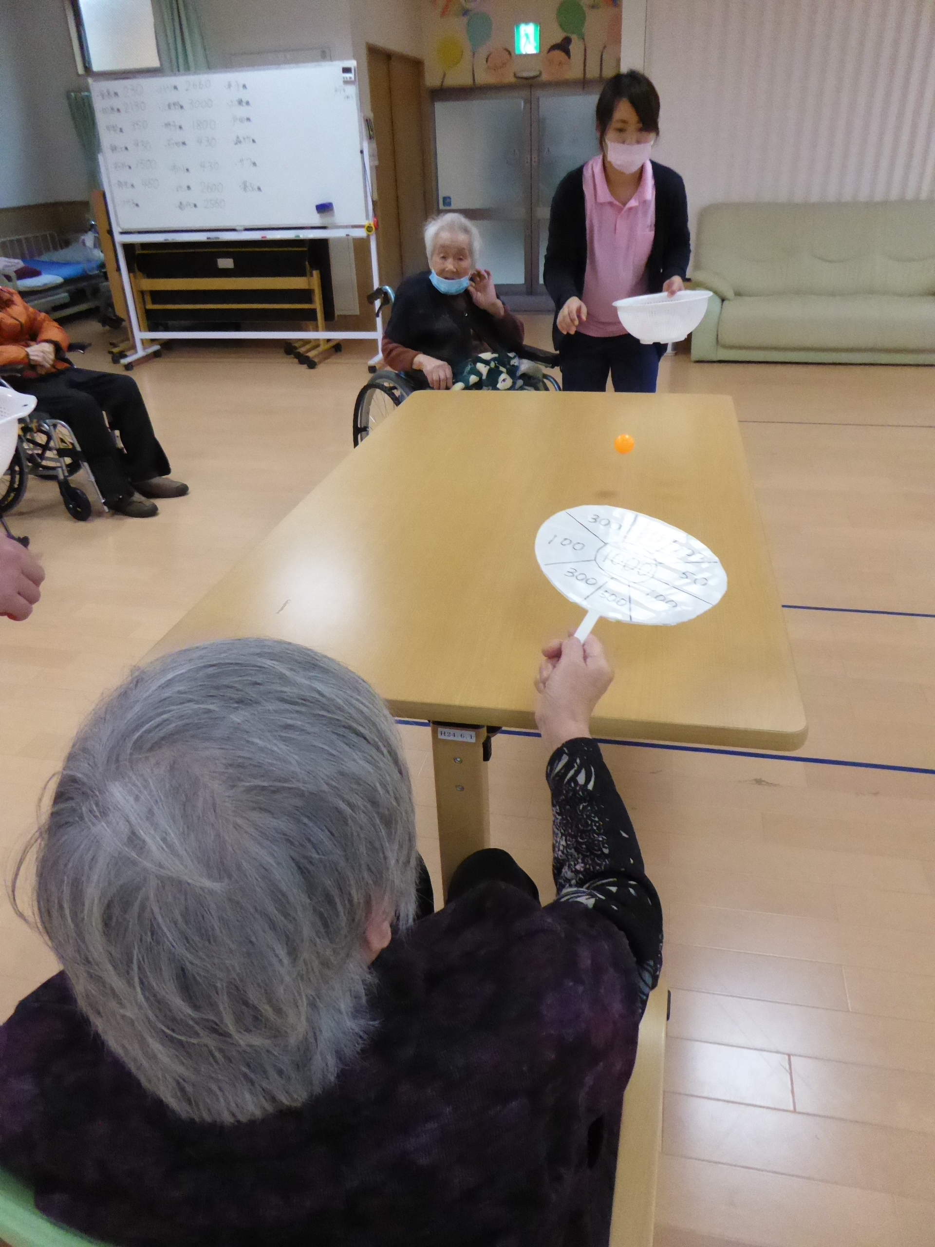 有料老人ホームロイヤル直川の認知症予防の取り組み うちわでキャッチしたらみんな笑顔になりました